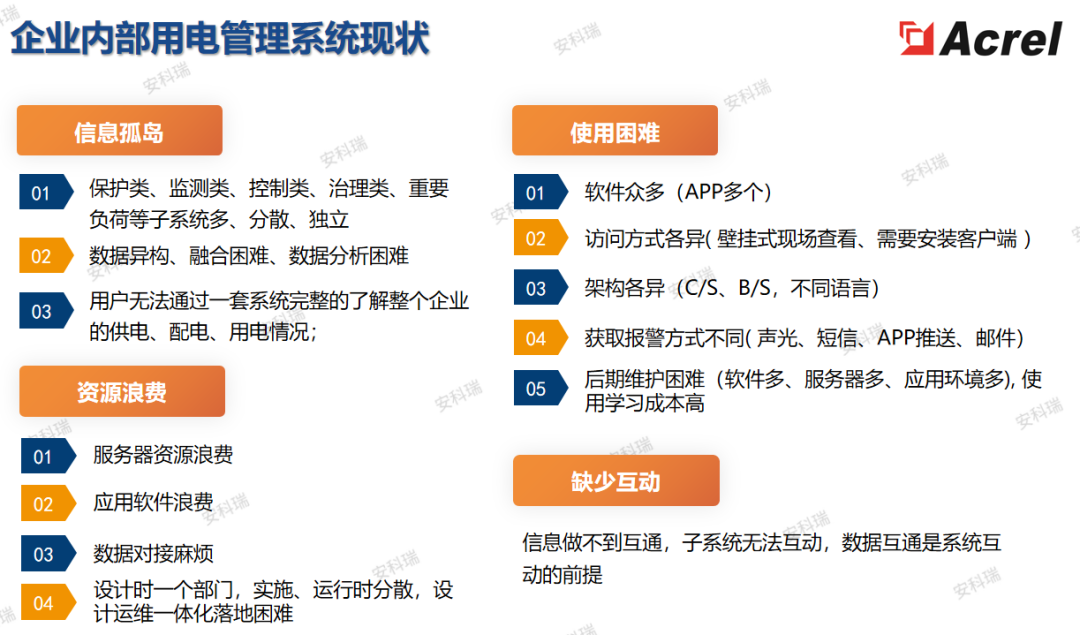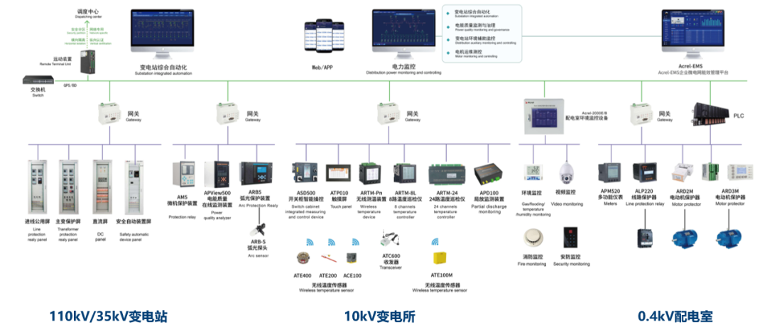 在源、網、荷、儲、充的各個關鍵節點安裝安科瑞自主研發的各類監測、分析、保護、治理裝置;通過先進的控制、計量、通信等技術,將各類數據集成在一個系統中集中展示,通過一個平臺即可全局、整體的對企業用電進行進行集中監控、統一調度、統一運維,同時滿足企業用電可靠、安全、節約、高效、有序的要求。